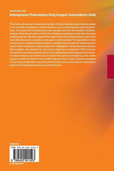 This book underscores the essential principles of photocatalysis and provides an update on its scientific foundations, research advances, and current opinions, and interpretations. It consists of an introduction to the concepts that form the backbone of photocatalysis, from the principles of solid-state chemistry and physics to the role of reactive oxidizing species. Having recognised the organic link with chemical kinetics, part of the book describes kinetic concepts as they apply to photocatalysis. The dependence of rate on the reaction conditions and parameters is detailed, the retrospective and prospective aspects of the mechanism of photocatalysis are highlighted, and the adsorption models, photocatalytic rate expressions, and kinetic disguises are examined. This book also discusses the structure, property, and activity relationship of prototypical semiconductor photocatalysts and reviews how to extend their spectral absorption to the visible region to enable the effective use of visible solar spectrum. Lastly, it presents strategies for deriving substantially improved photoactivity from semiconductor materials to support the latest applications and potential trends.