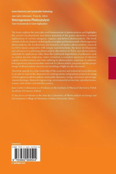 Photocatalytic CO2 reduction.- Photocatalytic Water Oxidation.- Heteropolyacid based heterogeneous photocatalysts for environmental applications.- Alternative materials to TiO2.- 1D TiO2 Nanotube Based Photocatalysts.- Water splitting by photocatalytic reduction.- Photoreactors design aspects and modelling of light.- Solar-Chemical Energy Conversion by Photocatalysis.- Synthetic applications of titanium(IV) oxide based photocatalysts.- Fundamentals of TiO2 photocatalysis: Consequences for some environmental applications.- Fundamental Processes in Surface Photocatalysis on TiO2.