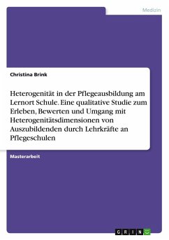 Masterarbeit aus dem Jahr 2024 im Fachbereich Pflegewissenschaft - Sonstiges, Note: 1,0, Fachhochschule Münster (Fachbereich Pflege), Sprache: Deutsch, Abstract: Auszubildende an Pflegeschulen stellen eine heterogene Gruppe dar. Vielfältige Lebensformen und Auslebungen verschiedener Religionen oder kulturelle Hintergründe sind miteinander verwoben, durchdringen sich oder gehen auseinander hervor. Auszubildende haben unterschiedlichste Lernbiografien, Lebensentwürfe und Möglichkeiten, diese zu verfolgen. Mit diesen einzigartigen Heterogenitätsdimensionen treffen sie in der Pflegeausbildung am Lernort Pflegeschule aufeinander. Lehrkräfte, die dieser Verschiedenheit der Auszubildenden gegenüberstehen, sind zu einem angemessenen pädagogisch-didaktischen Handeln aufgefordert. Doch wie erleben, bewerten und gehen Lehrkräfte mit der Heterogenität der Auszubildenden am Lernort Pflegeschule um? Dieser Forschungsfrage geht die Masterarbeit nach. Das Ziel ist es, die Empfindungen, das Bewerten der Verschiedenheit der Auszubildenden und bereits verwendete Strategien im Umgang mit heterogenen Auszubildenden herauszuarbeiten, die Lehrkräfte am Lernort Pflegeschule zeigen. Um die Forschungsfrage zu beantworten, wurden 12 Lehrkräfte an drei Pflegeschulen interviewt. Aus den erhobenen Daten wurden anhand der qualitativen Inhaltsanalyse nach Mayring (2022, 2023) induktiv Kategorien generiert.