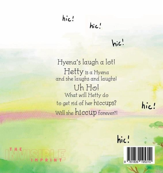Introducing Hetty Has Hiccups - a delightful children's picture book that will have young readers giggling and hiccupping along with the lovable hyena, Hetty! Hetty the hyena has a contagious laugh that can make even the grumpiest creatures crack a smile. But one day, something unusual happens - Hetty's laughter turns into a chorus of hiccups! Try as she might, the hiccups just won't go away, and Hetty becomes worried. Determined to find a cure, she embarks on a hilarious adventure, seeking help from her animal friends in the wild. Hetty Has Hiccups will have young readers copying the delightful hiccups along with Hetty, bringing the story to life. This heartwarming tale emphasizes the power of friendship, laughter, and the importance of celebrating the unique quirks that make us who we are. Join Hetty and her animal pals on a whimsical journey filled with laughter, hiccup-filled adventures, and a surprise party you won't want to miss! Hetty Has Hiccups is a charming picture book that will leave children chuckling and cherishing the joy of laughter.