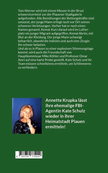 Tom Werner wird mit einem Messer in der Brust schwerstverletzt vor der Plauener Stadtgalerie aufgefunden. Alle Bemühungen der Rettungskräfte sind umsonst, der junge Mann erliegt noch vor Ort seinen schweren Verletzungen. Vorher hat er noch einen Namen genannt, Kemal. Kurz darauf wird im Luther-platz ein junger Migrant aufgegriffen, Kemal Abrim, mit Blut an der Kleidung. Der junge Mann schweigt beharrlich, obwohl die Indizien und auch eine Zeugin ihn schwer belasten. Und als es in Plauen zu einer explosiven Stimmungslage kommt, wird auch die Freundschaft von Hauptkommissar Mike Köhler und Professor Omar Amri auf eine harte Probe gestellt. Kate Schulz und ihr Team müssen schnellstens ermitteln, um Schlimmeres zu verhindern.