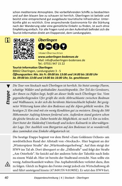 Das Buch enthält neben allen Informationen zum 181 Km langen Weg Angaben zu touristischen Höhepunkten und persönliche Tipps des Autors. Ein Gaststättenverzeichnis und Empfehlungen zu Unterkünften mit Kontaktadressen erleichtern die persönliche Planung. GPS-Tracks zum einfachen Download via QR-Code oder Link sind selbstverständlich. Nummerierte Marken im Höhenprofil, im Textblock, auf den Fotografien und Karten ermöglichen eine leichte Nachvollziehbarkeit der Strecken. Für schwierige Situationen stehen Koordinaten im WGS84 Format zur Verfügung. Ein kurzer Einleitungsteil erläutert die Verwendung. Die schönsten Fotografien können wie die GPS-Tracks heruntergeladen und beliebig geteilt werden.