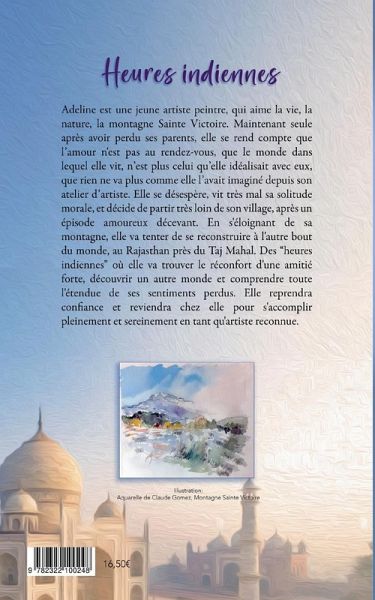 Adeline est une jeune artiste peintre, qui aime la vie, la nature, la montagne Sainte Victoire. Après avoir perdu ses parents, elle se rend compte que l'amour n'est pas au rendez-vous, que le monde dans lequel elle vit, n'est plus celui qu'elle idéalisait, que rien ne va plus comme elle l'avait imaginé depuis son atelier d'artiste. Elle se désespère, vit très mal sa solitude morale et décide de partir loin, après un épisode amoureux décevant. En s'éloignant de sa montagne, elle va tenter de se reconstruire à l'autre bout du monde, au Rajasthan près du Taj Mahal. Des "Heures Indiennes"où elle va trouver le réconfort d'une amitié forte, découvrir un autre monde et comprendre toute l'étendue de ses sentiments perdus. Elle reprendra confiance et reviendra chez elle pour s'accomplir, pleinement et sereinement, en tant qu'artiste reconnue.