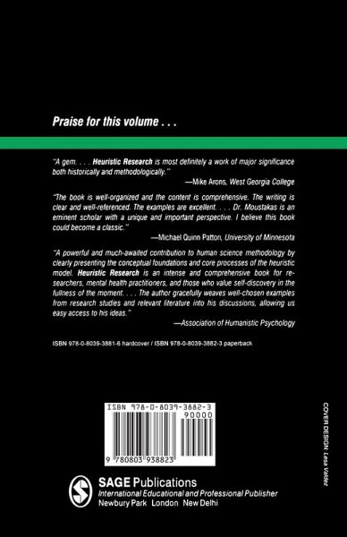 Well-organized and well-referenced, this book gives a clear presentation of heuristic methodology as a systematic form of qualitative research. Investigators of human experiences will find this book invaluable as a research guide. The author illustrates how heuristic concepts and processes form components of the research design and become the basis for a methodology. There is a clear explanation of how heuristic inquiry works in practice and the actual process of conducting a human science investigation is described in detail.