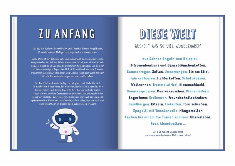 Wie verliere ich an schlechten Tagen nicht den Mut? Lässt sich Frust und Kummer teilen? Wie gehe ich mit Angst und Sorgen um? Diese Welt ist ein schöner Ort, aber manchmal auch schwierig. Kinder spüren das ebenfalls schnell. Die großen Fragen der Welt nach Leid, Krieg und Krisen bewegen auch sie. Dieses Buch hilft Grundschulkindern und Pre-Teens zwischen 8 und 12 Jahren dabei, herauszufinden, wie sie am besten mit schwierigen Themen aus den Nachrichten und ihrem eigenen Leben umgehen. Dafür gibt es viele praktische Tipps, was uns stark macht für die Herausforderungen auf diesem Planeten. Auch die Bibel gibt keine einfachen Antworten, aber sie schenkt große Trostworte und erzählt von einem Gott, der selbst erfahrener Experte in Sachen Gefühle ist und in Kummer und Krisen zur Seite steht.Mit den vielen interaktiven Mitmachseiten und viel Platz für die eigenen Gedanken wird dieses Ausfüllbuch schnell ein ganz persönlicher Begleiter: Ob herumkritzeln, ankreuzen, unterstreichen, den Rand mit Smileys und Grimassen verzieren, Listen erstellen, Bibelverse ausmalen, ein Eselsohr knicken oder Ideen reinschreiben, auf die die Autorin nicht gekommen ist alles, was hilft und Spaß macht, ist ausdrücklich erlaubt! Ein Buch für Superheldinnen und Angsthasen, Unerschrockene und Feiglinge und natürlich alle dazwischen.Über das Buch-Konzept:Dieses Buch thematisiert schwierige Themen wie Leid, Krieg, Katastrophen und Krisen altersgerecht und verständlich. Es lässt Kinder durch die interaktiven Mitmachseiten Handlungsspielraum erleben und eigene Lösungsansätze finden, statt sich als Opfer der Umstände zu fühlen. Es möchte helfen, emotionale Kompetenz sowie Selbstwirksamkeitsgefühl, Resilienz und mentale Gesundheit zu stärken und ermöglicht Gefühle zu erkennen, zu hinterfragen, zu bewältigen und an das Buch abzugeben. Darüber hinaus weist es auf weitere Hilfsangebote hin, an die sich Kinder bei Bedarf wenden können. Es bringt Kindern Gott näher und lässt sie Glauben als eineMöglichkeit erleben, kleine Alltagskrisen und globale Katastrophenmeldungen zu meistern. Es kann nicht nur zuhause, sondern auch in Schule, Jugendarbeit sowie Therapie und Seelsorge eingesetzt werden.