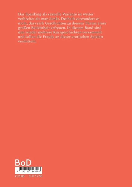 Das Spanking als sexuelle Variante ist weiter verbreitet als man denkt. Deshalb verwundert es nicht, dass sich Geschichten zu diesem Thema einer großen Beliebtheit erfreuen. In diesem Band sind nun wieder mehrere Kurzgeschichten versammelt und sollen die Freude an dieser erotischen Spielart vermitteln.