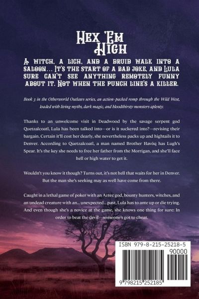 A witch, a lich, and a druid walk into a saloon… It's the start of a bad joke, and Lula sure can't see anything funny about it. Not when the punch line's a killer. Book 3 in the Otherworld Outlaws series, an action-packed romp through the Wild West, loaded with living myths, dark magic, and bloodthirsty monsters aplenty. Thanks to an unwelcome visit in Deadwood by the savage serpent god Quetzalcoatl, Lula has been talked into-or is it suckered into?-revising their bargain. Certain it'll cost her dearly, she nevertheless packs up and hightails it to Denver. According to Quetzalcoatl, a man…mehr