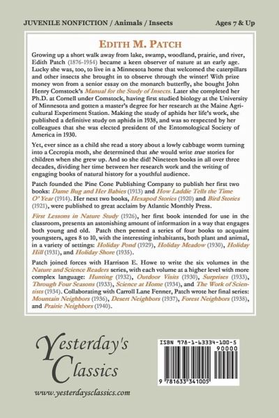 Imaginative stories of fourteen insects, their complex life cycles, and their environs, told in a way that captures children's interest. The insects described range from the familiar butterfly, moth, grasshopper, cricket, bumble bee, firefly, dragonfly, and beetle to the less well known tree hopper, walking stick and gall dweller. Notes include lots of suggestions for further reading. The author, a widely-respected entomologist, made it one of her life goals to produce engaging stories for children that were scientifically accurate in all respects.