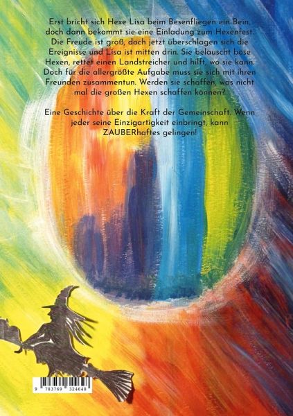 Erst bricht sich Hexe Lisa beim Besenfliegen ein Bein, doch dann bekommt sie eine Einladung zum Hexenfest. Die Freude ist groß, doch jetzt überschlagen sich die Ereignisse und Lisa ist mitten drin. Sie belauscht böse Hexen, rettet einen Landstreicher und hilft wo sie kann. Doch für die aller größte Aufgabe muss sie sich mit ihren Freunden zusammentun. Werden sie schaffen, was nicht mal die großen Hexen schaffen können? Eine Geschichte über die Kraft der Gemeinschaft. Wenn jeder seine Einzigartigkeit einbringt, kann ZAUBERhaftes gelingen!