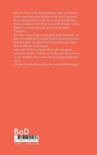 Mia ist zwar eine Taschenhexe, aber sie lebt in einer ausrangierten Bonbontüte, weil sie noch keine geeignete Tasche für sich gefunden hat. Dabei wohnen ihre Eltern und ihr Bruder schon längst in ihren eigenen, ganz besonderen Taschen. Als Mia eines Tages spazieren geht bemerkt sie, dass ein Mädchen seinen Hausschlüssel verliert. Schnell läuft sie dem Kind hinterher, um ihm den Schlüssel zu bringen.Aber bei Frida zu Hause herrscht ein ganz schönes Chaos. Zudem ist Frida traurig, weil sie in der Schule von einem fiesen Jungen geärgert wird.Ob die Taschenhexe Mia ihr wohl helfen kann?
