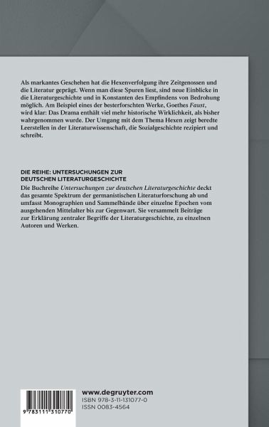 Schätzungsweise 60 000 tödlich endende Hexenprozesse in Europa haben nicht nur in Prozessakten Spuren hinterlassen. Im Bewusstsein der Zeitgenossen - und in der Literatur - blieben sie noch lange nach den großen Verfolgungswellen präsent. Wenn man sich das markante Geschehen heute ins Gedächtnis ruft, sind neue Einblicke in die Literaturgeschichte und in Konstanten des Empfindens von Bedrohung möglich. Dies zeigt das Beispiel Goethes Faust: Das Drama enthält nicht nur die bekannten Hexenimaginationen, sondern auch viel mehr historische Wirklichkeit als bisher wahrgenommen worden ist. Und weil es eines der besterforschten Werke ist, kann man es als Präzedenzfall für verschwiegene Spuren in der Literatur(wissenschaft) betrachten.
