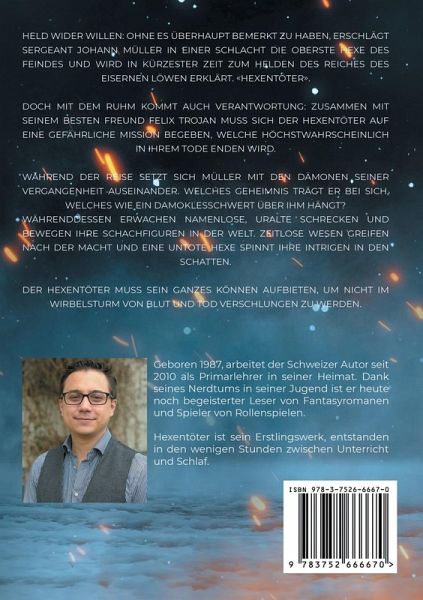 Held wider Willen: Ohne es überhaupt bemerkt zu haben, erschlägt Sergeant Johann Müller in einer Schlacht die oberste Hexe des Feindes und wird in kürzester Zeit zum Held des Reich des eisernen Löwen erklärt. Doch mit dem Ruhm kommt auch Verantwortung: Zusammen mit seinem besten Freund Felix Trojan muss sich der Hexentöter auf eine gefährliche Mission begeben, welche höchstwahrscheinlich in ihrem Tode enden wird. Während der Reise setzt sich Müller mit den Dämonen seiner Vergangenheit auseinander. Welches Geheimnis trägt er bei sich, das wie ein Damoklesschwert über ihm hängt? Währenddessen erwachen namenlose, uralte Schrecken und bewegen ihre Schachfiguren in der Welt. Zeitlose Wesen greifen nach der Macht und eine untote Hexe spinnt ihre Intrigen in den Schatten. Der Hexentöter muss sein ganzes Können aufbieten, um nicht im Wirbelsturm von Blut und Tod verschlungen zu werden.