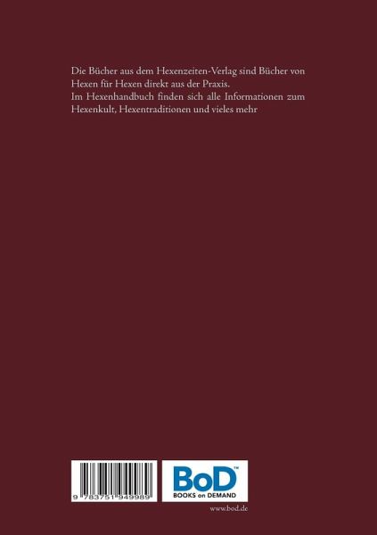 Die Bücher aus dem Hexenzeiten-Verlag sind Bücher von Hexen für Hexen direkt aus der Praxis. Im Hexenhandbuch finden sich alle Informationen zum Hexenkult, Hexentraditionen und vieles mehr. Diese Informationen, wurden dem zu seinerzeit größtem esoterischen Forum im Web entnommen. Von Junghexe bis zur Pristerin, von alternativen Heilmethoden sowie Orakelmöglichkeiten ist alles enthalten. Diese Themen wurden nicht nur über Jahre übers Internet ausgetauscht, versucht und getestet, die meisten Mitglieder des Hexenzeiten Forums lebten regulär danach. Hier geht es nicht um Magie, Übernatürlichen Dingen in diesem Sinn, es geht hier vielmehr um Wissen, woran unsere Vorfahren glaubten, - welches zumeist natürlichen Ursprunges ist.