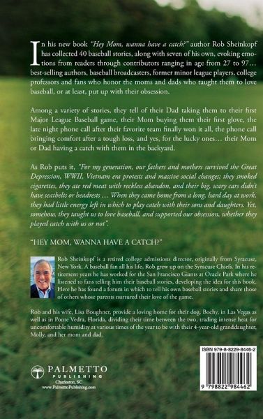 49 Baseball Stories That Will Warm Your Heart! This anthology celebrates parenthood and the powerful influence moms and dads have on their sons' and daughters' lifelong love for baseball. Author Rob Sheinkopf retired from a career in higher education and served as a Luxury Suites Concierge for the San Francisco Giants. At Oracle Park he listened to his guests tell their tales of fandom, oftentimes leading to emotional reminiscences with a parent at the center. This is where Sheinkopf was inspired to write this book; recruiting, collecting, editing and meticulously curating these heartfelt narratives. He has eight of his own stories sprinkled throughout. In this collection, you will read poignant reflections from award-winning authors, college professors, baseball broadcasters, former players, and fellow die-hard fans, offering a rich tapestry of perspectives: Read about a baseball trip this 12 year-old girl will never forget, driving with her dad from Tennessee to Dyersville, Iowa to see her first major league game. Experience a first-hand account from a 97 year-old lifelong baseball fan of spending a 1931 Sunday afternoon in Babe Ruth's New York apartment with many of his teammates and friends. Learn how a man finds the silver lining and long term benefits in never having played catch with his dad. Understand that Opening Day is not the best time to break a tooth, if you're a patient of this Las Vegas dentist. He can always be found in his usual seat every year at Dodger Stadium, as the season begins. Read the touching story how a Pirates pitcher accompanied this high school senior to his school's sports banquet after his father's untimely death. Appreciate the struggle that African American minor league baseball players endured in the 1960's through the perspective of a white teammate, and what price he paid to expose injustice. See how three daughters each learned to love baseball and the Boston Red Sox because of their father's passion for the game, and his ability to relate to each of them. Relive your memories through these heartwarming stories, as you reflect on your own relationship with your mom or dad, and your love of America's National Pastime.