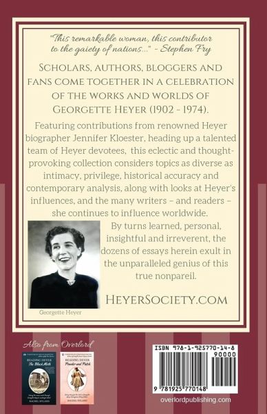 Scholars, authors, bloggers and fans come together in a celebration of the works, and worlds, of Georgette Heyer (1902 -1974). With contributions from renowned Heyer biographer Jennifer Kloester, heading up a talented team of Heyer devotees, this eclectic and thought-provoking collection features topics as diverse as intimacy, privilege, historical accuracy and contemporary analysis, plus looks at Heyer's influences, as well as the many writers - and readers - she continues to influence worldwide. By turns learned, personal, insightful and irreverent, the dozens of essays herein exult in the unparalleled genius of this true nonpareil. Including: 1. Georgette Heyer's Literary Genius, by Jennifer Kloester 2. A Most Excellent Influence - Jane Austen and Georgette Heyer, by Susannah Fullarton 3. From Arabella to Venetia - Growing Up with Heyer's Heroines by Rachel Hyland 4. The Heyer Problem - Privilege in Regency Romance, by Cat Sebastian 5. Marks of Distinction - Heyer's Mark I and Mark II Heroes by Janga 6. Beauvallet: My First Romance Novel Boyfriend, by Donna Cummings 7. Heyer's Kissing Cousins, by Ruth Williamson 8. What I Owe to Georgette Heyer, by Cheryl Bolen 9. 'Bath Tangle' in the Social Media Age, by Anne-Marie Turenne 10. Fathers in Heyer, by Janet Webb 11. The Grand Sophy: Matchmaker or Master Manipulator? by Jennifer Proffitt 12. Reluctantly Watching 'The Reluctant Widow' - Heyer on Film, by Rachel Hyland 13. Splash, Dash and Finesse! - Heyer's Magical Pen and Indomitable Spirit on Display in 'The Masqueraders,' by Kathleen Baldwin 14. Hearing Heyer - How Audiobooks Breed a New Appreciation by Karen Zachary 15. Learning! with Georgette Heyer, by Clara Shipman 16. The Mystery of 'Penhallow,' by Madeline Paschen 17. Behind Closed Doors - Sex in Georgette Heyer, by Anna Bradley 18. Reading 'The Great Roxhythe' - The Lost Heyer Historical, by Rachel Hyland 19. Beaux, Belles and Black Sheep - Georgette Heyer in Bath, by Kirsten Elliott 20. Coming Back to Heyer - How I Came to Appreciate the Slow Burn, by Megan Osmond 21. The Lost Contemporaries - A Slippery Slope, by Maura Tan 22. Gambling in Heyer, by Rachel Hyland 23. The Apple and the Tree - Georgette Heyer and the Black Dagger Brotherhood, by Kate Nagy 24. Was Georgette Heyer a Snob, and Does it Matter? by Tabetha Waite 25. Heyer's Heirs - What to Read After Georgette, by Amanda Jones Plus our contributors' Favorite Heyer novels, heroes and heroines, along with their firsts and their worsts. A must for any Heyer fan!