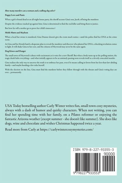 How many murders can a woman and a talking dog solve? Download this cozy mystery box set by USA Today Bestselling Author Carly Winter to find out! Puppy Love and Panic When a girl is found dead at an all-night house party, the sheriff accuses Gina's son, Jacob, of being the murderer. Despite the evidence stacked up against him, Gina is determined to find the real killer and bring them to justice. But how far will a mother go to prove her child's innocence? Misfit Mutts and Mayhem When a local bar owner is murdered, Gina Dunner doesn't give the event much notice-until the police find her DNA at the crime scene. As Gina and her friends hatch a desperate plan to reveal the murderer and discover who planted her DNA, a shocking revelation comes to light. It will shake Gina to her core, and the citizens of Heywood may never be the same again. Dog Kisses and Danger The small town of Heywood is abuzz with excitement as it votes for a new Sheriff. But when a body turns up at the polling station, the tragic death halts everything-and what initially appears to be an untimely passing soon reveals itself as a cleverly concealed murder. Gina realizes the only way to uncover the truth is to embrace her past, even if it means calling in favors from her less-than-law-abiding family-and maybe bending a few rules herself. With the election on the line, Gina must find the murderer before they follow through with the threats and Gina's voting days are over... permanently.