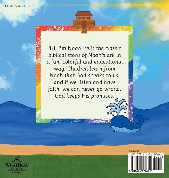 'Hi, I'm Noah' tells the classic biblical story of Noah's ark in a fun, colorful and educational way. Children learn from Noah that God speaks to us, and if we listen and have faith, we can never go wrong. God keeps His promises.