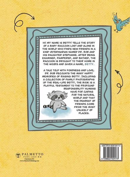 After falling from her nest, a baby raccoon is rescued by a veterinarian named Dr. Bob and his daughter. They lovingly name her Betty and bring her into their home. Comforted and fed, Betty becomes a part of Dr. Bob's family, learning about the world in her own special way, where every day is a new adventure. In Hi! My Name is Betty!, Dr. Bob recounts the many happy memories he and his family shared with Betty before returning her home to the forest. A playful testament to the responsibility humans have for the critters who live among us, young readers will surely fall in love with Betty themselves and gain a new appreciation for the wonders of the world around them. Hi! My Name is Betty was recently awarded second place in the Purple Dragonfly Book Awards in Non-Fiction! Follow the link below to find out more! https://story-monsters-book-awards.squarespace.com/purple-dragonfly-winners/purple-2024