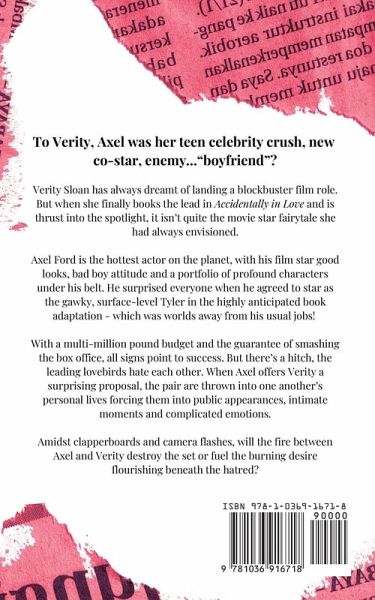 To Verity, Axel was her teen celebrity crush, new co-star, enemy..."boyfriend"? Verity Sloan has always dreamt of landing a blockbuster film role. But when she finally books the lead in Accidentally in Love and is thrust into the spotlight, it isn't quite the movie star fairytale she had always envisioned. Axel Ford is the hottest actor on the planet, with his film star good looks, bad boy attitude and a portfolio of profound characters under his belt. He surprised everyone when he agreed to star as the gawky, surface-level Tyler in the highly anticipated book adaptation - which was worlds away from his usual jobs! With a multi-million pound budget and the guarantee of smashing the box office, all signs point to success. But there's a hitch, the leading lovebirds hate each other. When Axel offers Verity a surprising proposal, the pair are thrown into one another's personal lives forcing them into public appearances, intimate moments and complicated emotions. Amidst clapperboards and camera flashes, will the fire between Axel and Verity destroy the set or fuel the burning desire flourishing beneath the hatred?