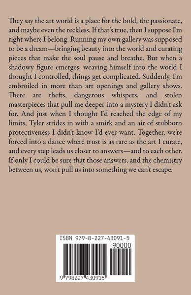 They say the art world is a place for the bold, the passionate, and maybe even the reckless. If that's true, then I suppose I'm right where I belong. Running my own gallery was supposed to be a dream-bringing beauty into the world and curating pieces that make the soul pause and breathe. But when a shadowy figure emerges, weaving himself into the world I thought I controlled, things get complicated. Suddenly, I'm embroiled in more than art openings and gallery shows. There are thefts, dangerous whispers, and stolen masterpieces that pull me deeper into a mystery I didn't ask for. And just when I thought I'd reached the edge of my limits, Tyler strides in with a smirk and an air of stubborn protectiveness I didn't know I'd ever want. Together, we're forced into a dance where trust is as rare as the art I curate, and every step leads us closer to answers-and to each other. If only I could be sure that those answers, and the chemistry between us, won't pull us into something we can't escape.