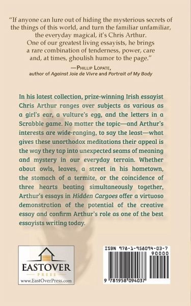 In this collection, prize-winning Irish essayist Chris Arthur ranges over subjects as various as a girl's ear, a vulture's egg, the letters in a Scrabble game, a sprig of witch-hazel, and the chasms of complexity contained in an ordinary moment. Whether he's writing about owls, leaves, a street in his hometown, the symbiotic interrelationships in the stomach of a termite, a souvenir cigarette box from a ship sunk in World War II, or the coincidence of three hearts beating simultaneously together, what gives these unorthodox meditations their appeal is the way they tap into unexpected seams of meaning and mystery in our everyday terrain. HIDDEN CARGOES offers a virtuoso demonstration of the potential of the creative essay.