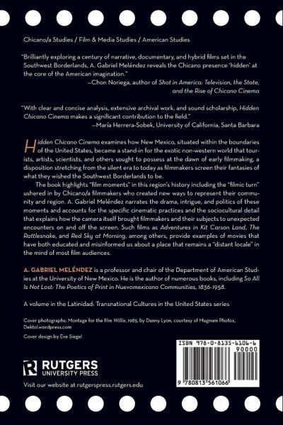 Hidden Chicano Cinema examines how New Mexico, situated within the boundaries of the United States, became a stand-in for the exotic non-western world that tourists, artists, scientists, and others sought to possess at the dawn of early filmmaking, a disposition stretching from the silent era to today as filmmakers screen their fantasies of what they wished the Southwest Borderlands to be. The book highlights “film moments” in this region’s history including the “filmic turn” ushered in by Chicano/a filmmakers who created new ways to represent their community and region. A. Gabriel MelÉndez narrates the drama, intrigue, and politics of these moments and accounts for the specific cinematic practices and the sociocultural detail that explains how the camera itself brought filmmakers and their subjects to unexpected encounters on and off the screen. Such films as Adventures in Kit Carson Land, The Rattlesnake, and Red Sky at Morning, among others, provide examples of movies that have both educated and misinformed us about a place that remains a “distant locale” in the mind of most film audiences.