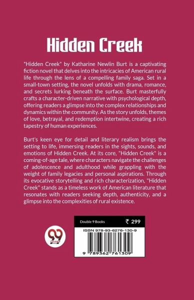 "Hidden Creek" by Katharine Newlin Burt is a captivating fiction novel that delves into the intricacies of American rural life through the lens of a compelling family saga. Set in a small-town setting, the novel unfolds with drama, romance, and secrets lurking beneath the surface. Burt masterfully crafts a character-driven narrative with psychological depth, offering readers a glimpse into the complex relationships and dynamics within the community. As the story unfolds, themes of love, betrayal, and redemption intertwine, creating a rich tapestry of human experiences. Burt's keen eye for detail and literary realism brings the setting to life, immersing readers in the sights, sounds, and emotions of Hidden Creek. At its core, "Hidden Creek" is a coming-of-age tale, where characters navigate the challenges of adolescence and adulthood while grappling with the weight of family legacies and personal aspirations. Through its evocative storytelling and rich characterization, "Hidden Creek" stands as a timeless work of American literature that resonates with readers seeking depth, authenticity, and a glimpse into the complexities of rural existence.