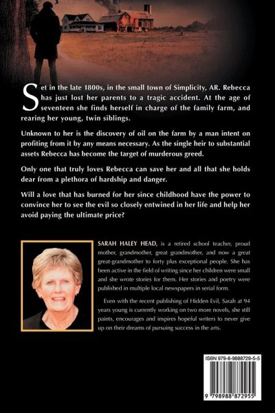 Set in the late 1800s, in the small town of Simplicity, AR. Rebecca has just lost her parents to a tragic accident. At the age of seventeen she finds herself in charge of the family farm, and rearing her young, twin siblings. Unknown to her is the discovery of oil on the farm by a man intent on profiting from it by any means necessary. As the single heir to substantial wealth, Rebecca has become the target of murderous greed.