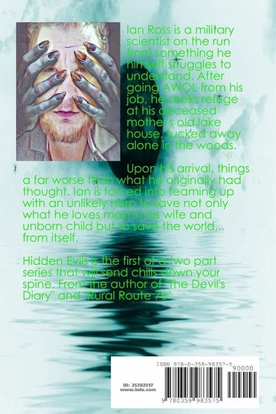Ian Ross is a military scientist on the run from something he himself struggles to understand. After going AWOL from his job, he seeks refuge at his deceased mother's old lake house, tucked away alone in the woods. Upon his arrival, things a far worse than what he originally had thought. Ian is forced into teaming up with an unlikely hero to save not only what he loves most in his wife and unborn child but to save the world...from itself. Hidden Evils is the first of a two part series that will send chills down your spine. From the author of "The Devil's Diary" and "Rural Route 76".