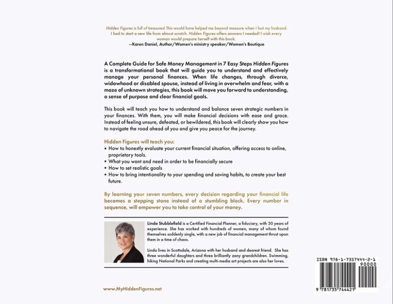Book 2 in the Hidden Figures Book & Workbook Series Hidden Figures: Seven Numbers Women Must Know for Financial Success is a transformational book that will guide you to understand and effectively manage your personal finances. This book series introduces seven strategic numbers that you need to know to be financially secure. Hidden Figures Workbook will teach you how to understand, use and balance seven strategic numbers in your finances. The workbook is a companion to the book: Hidden Figures. Hidden Figures, the book, is #1 in the series. The Workbook is #2 in the series. Together, (sold separately) you will make financial decisions with ease and grace. Instead of feeling unsure, defeated, or bewildered, this book will clearly show you how to navigate the road ahead of you and give you peace for the journey. With purchase of the workbook, you will be given access to online calculators and tools for discovering your seven critical numbers as well as detailed instructions to work out your seven Hidden Figures. What you learned in the book, you will apply to your own financial situation. With the book and workbook together, you will make financial decisions with ease and grace. You will know how much you can safely spend each month. You will know how much debt you can carry. You will know how much you need to save for emergencies. Instead of feeling unsure, defeated, or bewildered, this book will clearly show you how to navigate the road ahead of you and give you peace for the journey. By using this companion to the book, you will learn: * How to honestly evaluate your current financial situation, offering access to online, proprietary tools * What you want and need in order to be financially secure * How to set realistic goals * How to bring intentionality to your spending and saving habits, to create your best future By learning your seven numbers, every decision regarding your financial life becomes a stepping stone instead of a stumbling block. Every number in sequence, will empower you to take control of your money. Author, Linda Stubblefield is a Certified Financial Planner, a fiduciary, with 30 years of experience. She has worked with hundreds of women, many of whom found themselves suddenly single, with a new job of financial management thrust upon them in a time of chaos and grief. Inspired to help these women overcome the huge challenges before them, she designed the tools and methods of teaching by working directly, in a hands-on environment with actual clients and hearing about their real-life obstacles to managing their money even when they had no prior experience. Written with insight, compassion, and educational expertise, Hidden Figures is focused on giving tools and explanations that result in life habits and understanding of concepts, rather than dependence on others for advice.