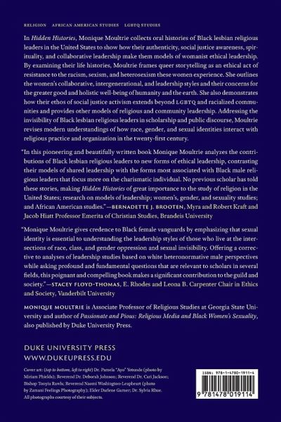 Monique Moultrie collects oral histories of Black lesbian religious leaders in the United States to show how their authenticity, social justice awareness, spirituality, and collaborative leadership make them models of womanist ethical leadership.