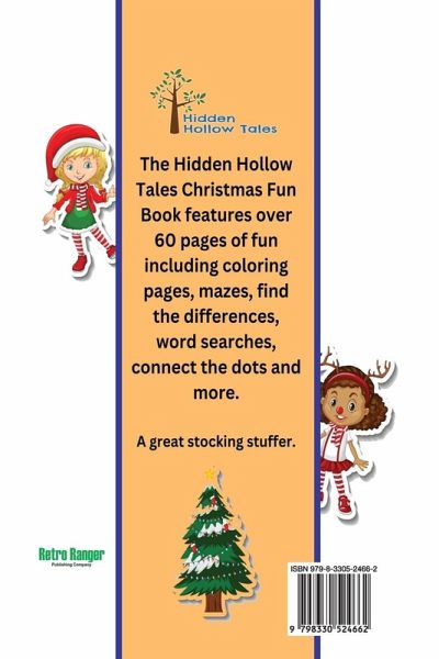 The Hidden Hollow Tales Christmas Fun Book features over 60 pages of fun including coloring pages, mazes, find the differences, word searches, connect the dots and more. 6x9 size fits great in a holiday stocking.