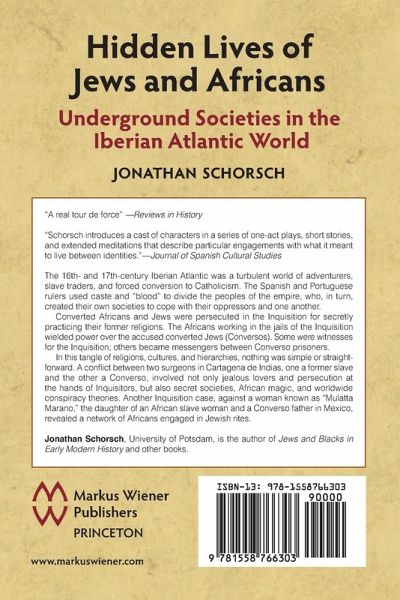 The 16th- and 17th-century Iberian Atlantic was a turbulent world of adventurers, slave traders, and forced conversion to Catholicism. The Spanish and Portuguese rulers used caste and "blood" to divide the peoples of the empire, who, in turn, created their own societies to cope with their oppressors and one another. Converted Africans and Jews were persecuted in the Inquisition for secretly practicing their former religions. The Africans working in the jails of the Inquisition wielded power over the accused converted Jews (Conversos). Some were witnesses for the Inquisition; others became messengers between Converso prisoners. In this tangle of religions, cultures, and hierarchies, nothing was simple or straightforward. A conflict between two surgeons in Cartagena de Indias, one a former slave and the other a Converso, involved not only jealous lovers and persecution at the hands of Inquisitors, but also secret societies, African magic, and worldwide conspiracy theories. Another Inquisition case, against a woman known as "Mulatta Marano," the daughter of an African slave woman and a Converso father in Mexico, revealed a network of Africans engaged in Jewish rites.