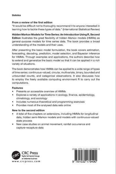 The book demonstrates how HMMs can be applied to a wide range of types of time series: continuous-valued, circular, multivariate, binary, bounded and unbounded counts, and categorical observations. It also discusses how to employ the freely available computing environment R to carry out the computations.