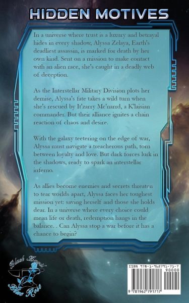 In a universe where trust is a luxury and betrayal hides in every shadow, Alyssa Zelaya, Earth's deadliest assassin, is marked for death by her own kind. Sent on a mission to make contact with an alien race, she's caught in a deadly web of deception. As the Interstellar Military Division plots her demise, Alyssa's fate takes a wild turn when she's rescued by It'zarry Mc'narrd, a K'laisian commander. But their alliance ignites a chain reaction of chaos and desire. With the galaxy teetering on the edge of war, Alyssa must navigate a treacherous path, torn between loyalty and love. But dark forces lurk in the shadows, ready to spark an interstellar inferno. As allies become enemies and secrets threaten to tear worlds apart, Alyssa faces her toughest mission yet: saving herself and those she holds dear. In a universe where every choice could mean life or death, redemption hangs in the balance. Get ready for a sci-fi thrill ride where the stakes are sky-high. Can Alyssa stop a war before it has a chance to begin?