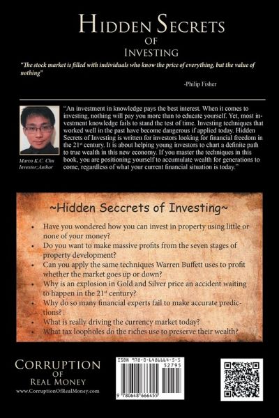 An investment in knowledge pays the best interest. When it comes to investing, nothing will pay you more than to educate yourself. Yet, most investment knowledge fails to stand the test of time. Investing techniques that worked well in the past have become dangerous if applied today. Hidden Secrets of Investing is written for investors looking for financial freedom in the 21st century. It is about helping young investors to chart a definite path to true wealth in this new economy. If you master the techniques in this book, you are positioning yourself to accumulate wealth for generations to come, regardless of what your current financial situation is today.