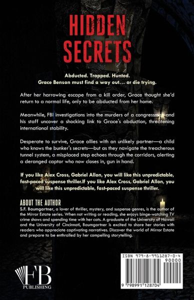 Abducted. Trapped. Hunted. Grace Benson must find a way out... or die trying. After her harrowing escape from a kill order, Grace thought she'd return to a normal life, only to be abducted from her home. Meanwhile, FBI investigations into the murders of a congressman and his staff uncover a shocking link to Grace's abduction, threatening international stability. Desperate to survive, Grace allies with an unlikely partner-a child who knows the bunker's secrets-but as they navigate the treacherous tunnel system, a misplaced step echoes through the corridors, alerting a deranged captor who now closes in, gun in hand. If you like Alex Cross, Gabriel Allon, you will like this unpredictable, fast-paced suspense thriller.
