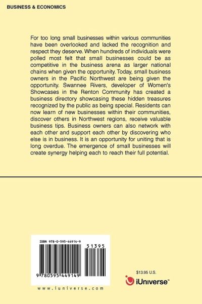 For too long small businesses within various communities have been overlooked and lacked the recognition and respect they deserve. When hundreds of individuals were polled most felt that small businesses could be as competitive in the business arena as larger national chains when given the opportunity. Today, small business owners in the Pacific Northwest are being given the opportunity. Swannee Rivers, developer of Women's Showcases in the Renton Community has created a business directory showcasing these hidden treasures recognized by the public as being special. Residents can now learn of new businesses within their communities, discover others in Northwest regions, receive valuable business tips. Business owners can also network with each other and support each other by discovering who else is in business. It is an opportunity for uniting that is long overdue. The emergence of small businesses will create synergy helping each to reach their full potential.
