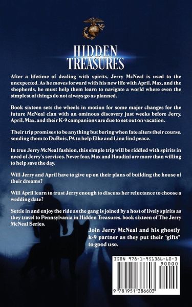 After a lifetime of dealing with spirits, Jerry McNeal is used to the unexpected. As he moves forward with his new life with April, Max, and the shepherds, he must help them learn to navigate a world where even the simplest of things do not always go as planned. Book sixteen sets the wheels in motion for some major changes for the future McNeal clan with an ominous discovery just weeks before Jerry, April, Max, and their K-9 companions are due to set out on vacation. Their trip promises to be anything but boring when fate alters their course, sending them to Dubois, PA to help Elke and Lina find peace. In true Jerry McNeal fashion, this simple trip will be riddled with spirits in need of Jerry's services. Never fear, Max and Houdini are more than willing to help save the day. Will Jerry and April have to give up on their plans of building the house of their dreams? Will April learn to trust Jerry enough to discuss her reluctance to choose a wedding date? Settle in and enjoy the ride as the gang is joined by a host of lively spirits as they travel to Pennsylvania in Hidden Treasures, book sixteen of The Jerry McNeal Series.