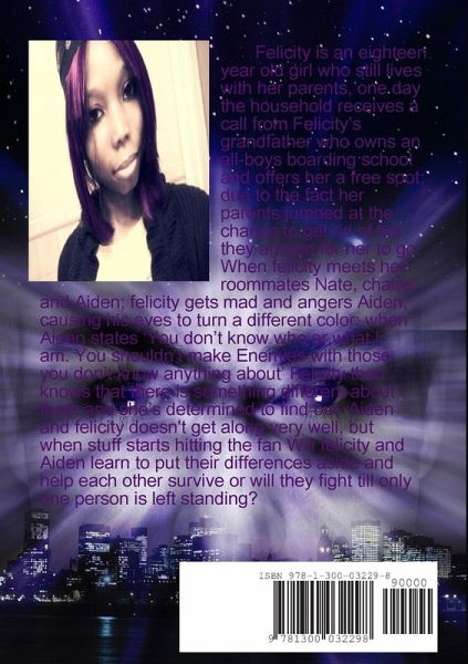 Felicity is an eighteen year old girl who still lives with her parents, one day the household receives a call from Felicity's grandfather who owns an all-boys boarding school and offers her a free spot; due to the fact her parents jumped at the chance to get rid of her they agreed for her to go. When felicity meets her roommates Nate, chaise and Aiden; felicity gets mad and angers Aiden, causing his eyes to turn a different color; when Aiden states 'You don't know who or what I am. You shouldn't make Enemies with those you don't know anything about' Felicity then knows that there is something different about them and she's determined to find out. Aiden and felicity doesn't get along very well, but when stuff starts hitting the fan Will felicity and Aiden learn to put their differences aside and help each other survive or will they fight till only one person is left standing?