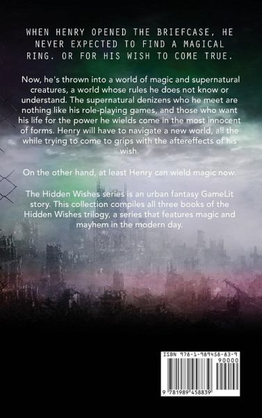 One faithful day Henry Tsien finds a briefcase and a ring within it. Within hours, his world has changed as a helpful jinn introduces him to a hidden world. What can an old-school gamer given magic do in a world filled with age-old, hidden, supernatural creatures?The Hidden Wishes series is an urban fantasy take on the GameLit genre. It is much lighter in terms of 'statistics' and its game system. This is the full trilogy of the series.Books include:A Gamer's Wish A Squire's Wish A Jinn's Wish Enjoy the entire Hidden Wishes series in just one book!