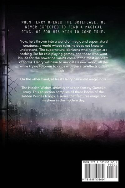 One faithful day Henry Tsien finds a briefcase and a ring within it. Within hours, his world has changed as a helpful jinn introduces him to a hidden world. What can an old-school gamer given magic do in a world filled with age-old, hidden, supernatural creatures? The Hidden Wishes series is an urban fantasy take on the GameLit genre. It is much lighter in terms of 'statistics' and its game system. This is the full trilogy of the series. Books include:A Gamer's Wish A Squire's Wish A Jinn's Wish Enjoy the entire Hidden Wishes series in just one book!