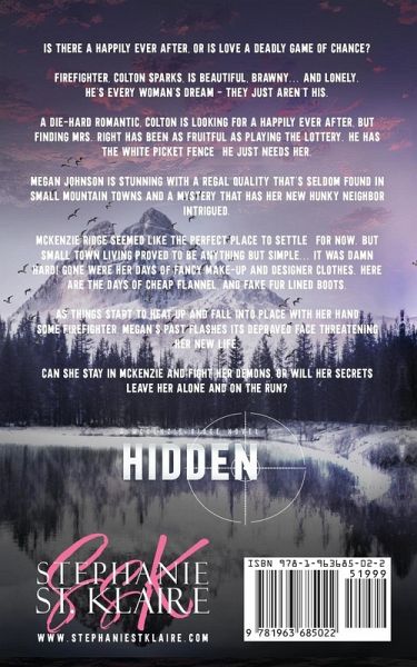 Is there a happily ever after, or is love a deadly game of chance? Firefighter, Colton Sparks, is beautiful, brawny...and lonely. He's every woman's dream - they just aren't his. A die-hard romantic, Colton is looking for a happily ever after, but finding Mrs. Right has been as fruitful as playing the lottery. He has the white picket fence...he just needs her. Megan Johnson is stunning with a regal quality that's seldom found in small mountain towns and a mystery that has her new hunky neighbor intrigued. McKenzie Ridge seemed like the perfect place to settle...for now. But small town living proved to be anything but simple...it was damn hard! Gone were her days of fancy make-up and designer clothes. Here are the days of cheap flannel, and fake fur lined boots. As things start to heat up and fall into place with her handsome firefighter, Megan's past flashes its depraved face threatening her new life. Can she stay in McKenzie and fight her demons, or will her secrets leave her alone and on the run?