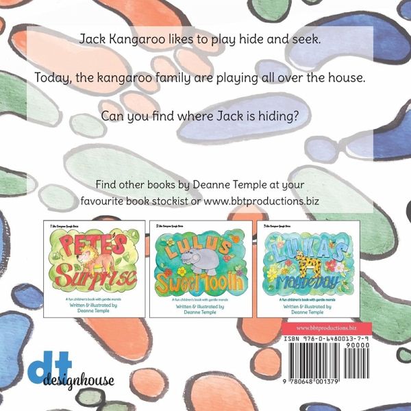 The Kangaroo Family likes to play Hide and Seek. Today, Jack and his brothers are playing all over the house. Can you find where Jack is hiding? The hand-drawn images of the Kangaroo Family will draw little readers in as they look for Jack around his house. Play hide and seek with your child as they learn new reading words. This delightful book is by the author of the much-loved Evergreen Jungle Series. The jungle animals in Pete's Surprise, Lulu's Sweet Tooth and Luka's Maybe Day encourage children to look after themselves and others in a gentle and fun way.