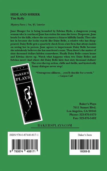Mystery Farce 5m / 9f / interior June Hunger for is being hounded by Edwina Hyde, a dangerous young woman who is convinced June has stolen the man she loves. Desperate, June heads for the hills, where she encounters a bizarre hillbilly family. They take her in because she looks exactly like Daisy Belle, a relative who has disappeared. Daisy Belle gets a quarterly check from a law firm that always insists on seeing her in person. June agrees to impersonate Daisy Belle because sh