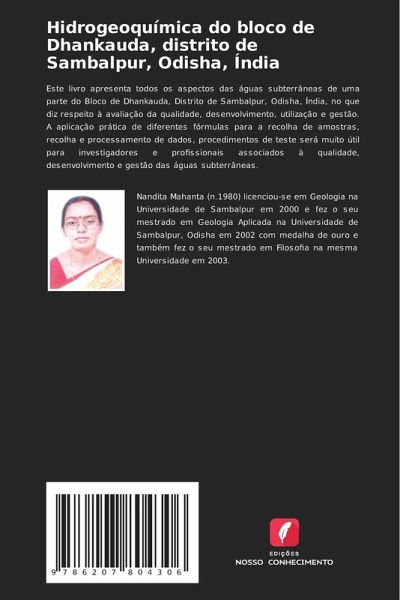 Este livro apresenta todos os aspectos das águas subterrâneas de uma parte do Bloco de Dhankauda, Distrito de Sambalpur, Odisha, Índia, no que diz respeito à avaliação da qualidade, desenvolvimento, utilização e gestão. A aplicação prática de diferentes fórmulas para a recolha de amostras, recolha e processamento de dados, procedimentos de teste será muito útil para investigadores e profissionais associados à qualidade, desenvolvimento e gestão das águas subterrâneas.