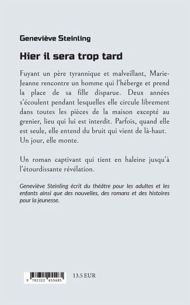 Fuyant un père tyrannique et malveillant, Marie-Jeanne rencontre un homme qui l'héberge et prend la place de sa fille disparue. Deux années s'écoulent pendant lesquelles elle circule librement dans toutes les pièces de la maison excepté au grenier, lieu qui lui est interdit. Parfois, quand elle est seule, elle entend du bruit qui vient de là-haut.Un jour, elle monte.Un roman captivant qui tient en haleine jusqu'à l'étourdissante révélation.