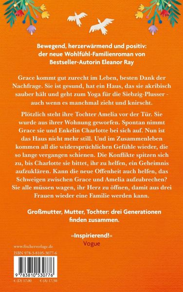 Plötzlich steht ihre Tochter Amelia vor der Tür. Sie wurde aus ihrer Wohnung geworfen. Spontan nimmt Grace sie und Enkelin Charlotte bei sich auf. Nun ist das Haus nicht mehr still. Und im Zusammenleben kommen all die widersprüchlichen Gefühle wieder, die so lange vergangen schienen. Die Konflikte spitzen sich zu, bis Charlotte sie bittet, ihr zu helfen, ein Geheimnis aufzuklären. Kann die neue Offenheit auch helfen, das Schweigen zwischen Grace und Amelia aufzubrechen? Sie alle müssen wagen, ihr Herz zu öffnen, damit aus drei Frauen wieder eine Familie werden kann.