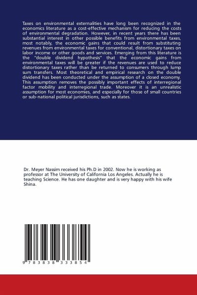 Taxes on environmental externalities have long been recognized in the economics literature as a cost effective mechanism for reducing the costs of environmental degradation. However, in recent years there has been substantial interest in other possible benefits from environmental taxes, most notably, the economic gains that could result from substituting revenues from environmental taxes for conventional, distortionary taxes on labor income or other goods and services. Emerging from this literature is the double dividend hypothesis that the economic gains from environmental taxes will be greater if the revenues are used to reduce distortionary taxes rather than be returned to consumers through lump sum transfers. Most theoretical and empirical research on the double dividend has been conducted under the assumption of a closed economy. This assumption removes the possibly important effects of interregional factor mobility and interregional trade. Moreover it is an unrealistic assumption for most economies, and especially for those of small countries or sub national political jurisdictions, such as states.