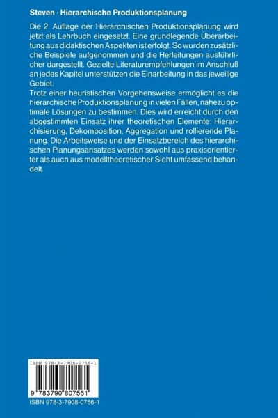 Die hierarchische Produktionsplanung kann als ein Versuch zur Integration von vorher weitgehend unverbundenen Entwicklungen im Bereich des Operations Research einerseits und der computergestützten Produktionsplanungs- und -steuerungssysteme andererseits angesehen werden: Entsprechend dem modularen Aufbau der PPS-Systeme erfolgt die hierarchische Produktionsplanung als Sukzessivplanung, wobei die Teilprobleme nach der gegebenen hierarchischen Struktur im Produktionsbereich angeordnet werden. Zur Lösung der Teilprobleme werden häufig anspruchsvolle, problemadäquate Algorithmen des Operations Research eingesetzt. Die zweite Auflage diese Lehrbuchs wurde unter didaktischen Aspekten grundlegend überarbeitet. Es wurden zusätzliche Beispiele aufgenommen und die Herleitungen ausführlicher dargestellt. Gezielte Literaturempfehlungen im Anschluß an jedes Kapitel unterstützen die Einarbeitung in das jeweilige Gebiet.